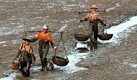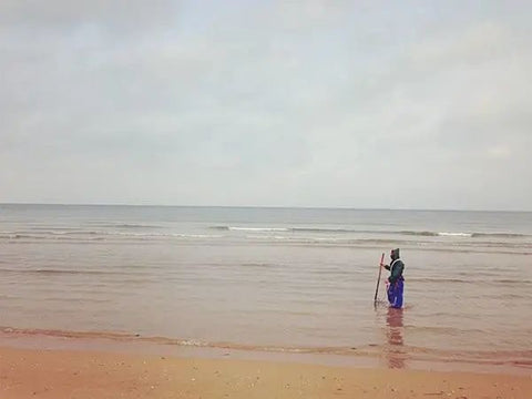 While walking on the beach, we saw several people using rakes to plow in the sea. As designers with a strong sense of curiosity, we naturally approached them. The elder told us that he was sifting for clams in the shallow beach.