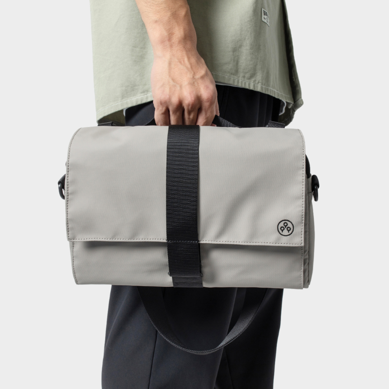 The plus is the bag you take when you need to carry more things on the go without any compromise. It is designed to carry your point and shoot camera, Nintendo switch, iPad and umbrella. It is made from recycled PET as a commitment to recycling.